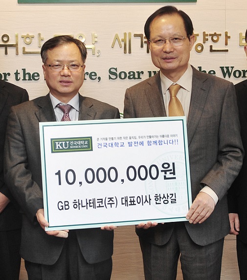 [미디어펜=류용환 기자] 건국대학교는 한상길 GB하나테코 대표가 ‘동물생명과학대학 지정 장학금’ 1000만원을 지난 2일 기부했다고 6일 밝혔다.