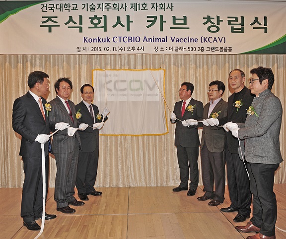 송희영 건국대 총장은 "건국대 수의과대학은 동물생명 바이오 분야의 선도대학으로 기술 산업화에 우수한 성과를 보여왔으며 건국대 기술지주회사의 자회사인 카브의 설립은 산학연구를 넘어 새로운 비즈니스 모델을 만들어간다는데 큰 의미가 있다"고 말했다.
