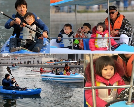 송일국은 '레포츠 신동' 대한이와 함께 카약에 탑승했고, 만세와 민국이는 해맑은 표정으로 추부녀의 통통배에 합승했다.