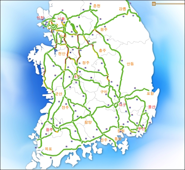 | ▲ 오후 3시 현재 고속도로 교통상황 / 사진=한국도로공사 홈페이지 | ||