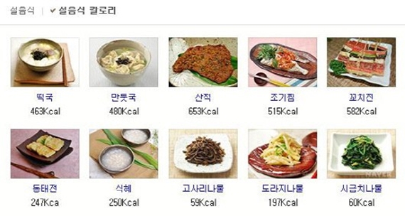 | ▲ 설 음식 칼로리/사진=네이버 메인화면 캡처 | ||