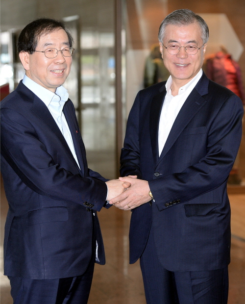 박원순 시장은 회동에 앞서 문재인 대표와 차기 대권 경쟁주자가 아니냐'는 질문에 "협력만 하는 사이다. 사람들은 왜 자꾸 경쟁에 초점을 맞춰 이야기하냐. 협동의 힘이 훨씬 큰데"라며 웃어 보였다.