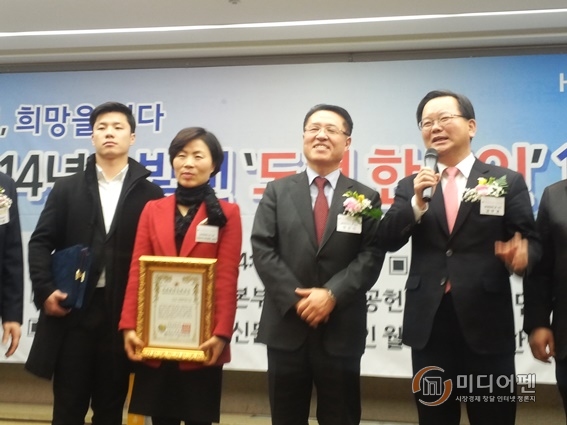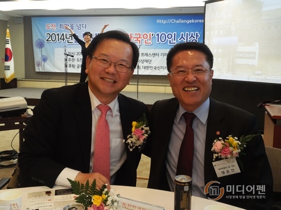 정운천, 김부겸씨가 23일 <도전한국인>상을 수상했다. 대한민국공헌대상재단과 도전한국인운동본부는 이날 서울 프레스센터에서 2015년을 빛낸 도전한국인으로 정운천전장관과 부인 최경선씨및 두자녀, 김부겸 전의원과 부인 이유미, 딸을 나란히 선정했다.
