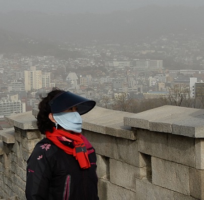 | ▲ 23일 서울에 황사 경보와 초미세먼지주의보가 내려진 가운데 서울성곽길에서 한 시민이 뿌옇게 흐려진 시내를 바라보고 있다. /사진=뉴시스 | ||