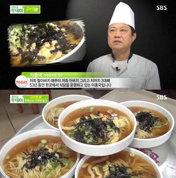 이날 방송에서 따르면 현재 가락국수 가게를 운영 중인 이종국 씨의 부친, 할아버지까지 3대가 가락국수를 만들었다.