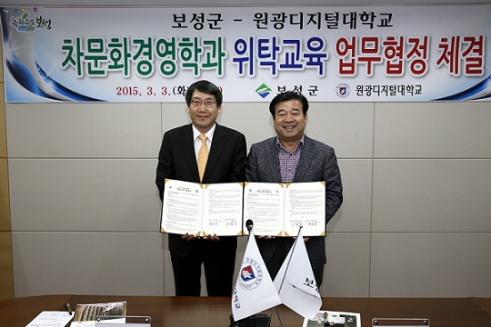 [미디어펜=류용환 기자] 원광디지털대학교는 전남 보성군청과 ‘차 문화산업 발전을 위한 위탁교육 업무협약(MOU)’을 3일 체결했다고 4일 밝혔다.