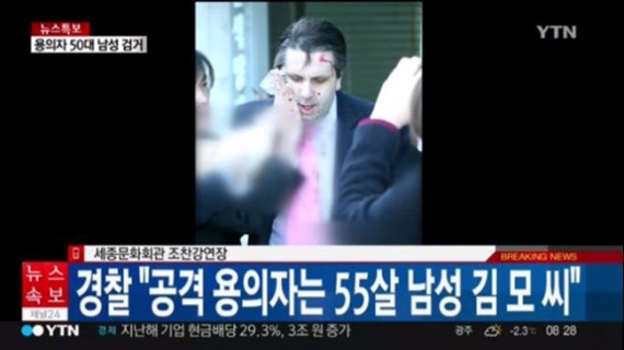 | ▲ 마크 리퍼트 주한 미국대사가 민화협 소속 김기종으로부터 테러를 당해 부상 당하는 끔찍한 사건이 발생했다. /YTN 캡처 | ||