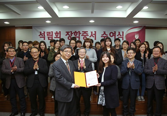 [미디어펜=류용환 기자] 고려대학교 교수들로 구성된 장학재단 석림회는 ‘2015학년도 1학기 장학증서 수여식’을 5일 개최했다고 6일 밝혔다