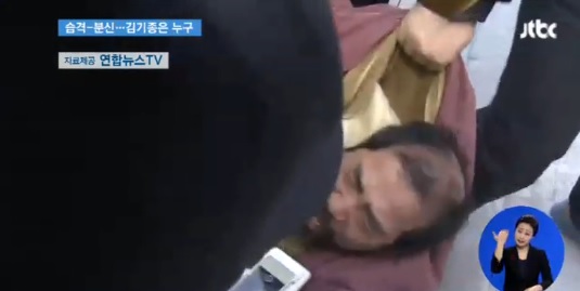 | ▲ 9일 마크 리퍼트 주한미국 대사를 공격한 '우리마당 통일문화연구소' 소장 김기종(55)씨가 수사 과정에 "남한에는 김일성만한 지도자는 없다"고 발언했다는 소식을 접한 네트즌들은 울분을 참지 않았다/사진=JTBC 캡쳐 | ||
