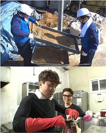 정태호와 김범수는 한 팀을 이뤄 가마솥 만들기에 돌입했다. 동갑내기인 두 사람은 흙을 채에 걸러내는 작업 중에도 알콩달콩한 분위기를 연출해 웃음을 자아냈다. 특히 정태호는 다리를 다친 김범수를 위해 궂은 일을 도맡아 해 위험한 로맨스(?)의 시작을 알렸다.