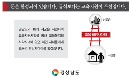 홍준표 경남도지사 '무상급식' 예산 643억원 교육사다리사업투자