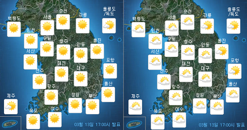 | ▲ 14일 오전·오후 /자료=기상청 | ||
