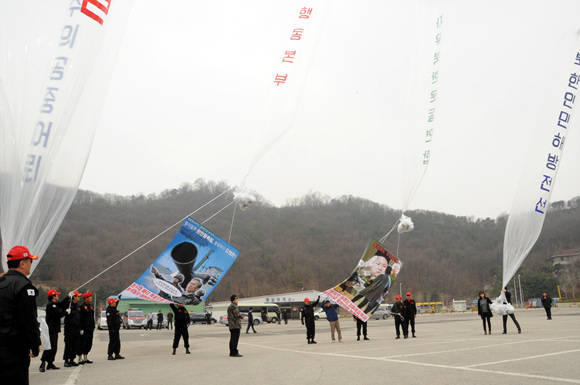 | ▲ 국민행동본부는 작년 3월25일 오전 경기도 파주시 오두산 통일전망대에서 천안함 폭침사태를 규탄하는 내용을 담은 ‘복수의 공중어뢰(대북전단 풍선)’를 북으로 쏘아 올렸다. /사진=국민행동본부 홈페이지 | ||