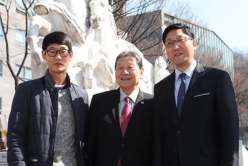 | ▲ 숭실대 '3대 동문' (왼쪽부터)오영찬군·오경삼 한국외항선교회 대외협력실장·오성택 종로종합사회복지관 부장. | ||