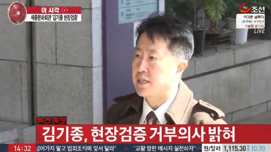 | ▲ 23일 서울지방경찰청에 따르면 김씨는 몸이 불편하다는 이유로 현장검증을 거부하자 세종문화회관 세종홀에서 김씨 없이 현정검증이 진행됐다/사진=TV조선 캡쳐 | ||