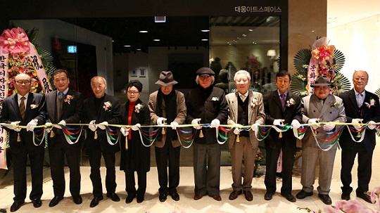 | ▲ 23일 서울 강남구 대웅아트스페이스에서 진행된 권명광 상명대 석좌교수, 김광우, 송번수 작가의 작품전시회 개막식 행사에서 참석자들이 테이프 커팅을 하고 있다. | ||