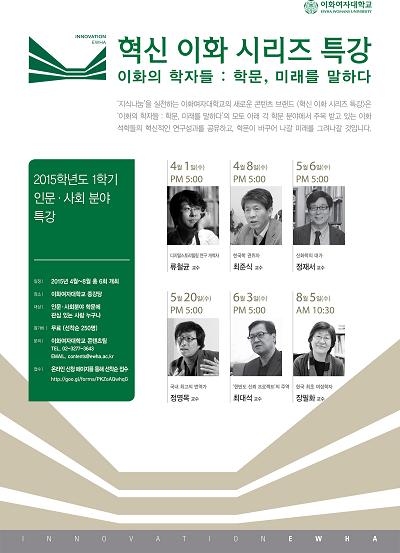 특강에는 디지털미디어학부 류철균(4월1일), 한국학과 최준식(4월8일), 중어중문학전공 정재서(5월6일), 번역학과 정영목(5월20일), 북한학과 최대석(6월3일), 여성학과 장필화(8월6일) 교수 등 6명의 석학이 참여한다.
