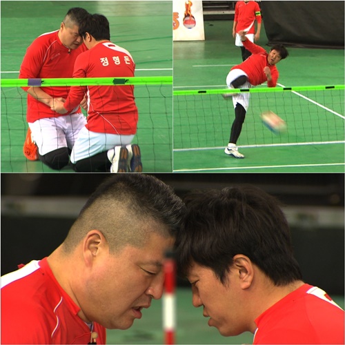 [미디어펜=이승혜 인턴기자] KBS 2TV '우리동네 예체능‘에서 강호동과 정형돈이 족구 경기도중 무릎을 꿇고 앉아 고해성사를 했다.