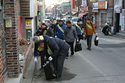 | ▲ 25일 한성대 교직원 및 주민 등이 서울 성북구 한성대입구역 부근에서 '2015 봄맞이 대청소'에 참여하고 있다. | ||
