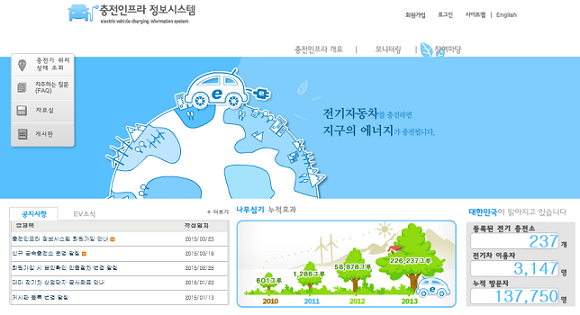 하지만 해당 홈페이지 메인 화면은 충전소 위치만 강조할 뿐 초기 사용자에 대한 안내는 전혀 이뤄지지 않았다. 2013년 11월 게재한 ‘회원가입 및 카드발급 신청 방법’ 안내 사항을 1년4개월 지난 이달 23일에서야 메인 화면에 배치시켰다.