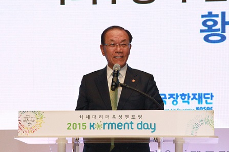 | ▲ 지난 4일 서울 동대문구 경희대 평화의전당에서 열린 '제6기 코멘트데이'에서 황우여 사회부총리 겸 교육부장관이 인사말을 하고 있다. /사진=한국장학재단 | ||
