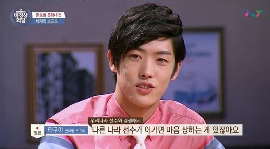지난해 9월 방송된 종합편성채널 JTBC 예능프로그램 비정상회담에서는 '인터넷이 안 되면 불안한 나, 비정상인가요?'라는 주제로 토론을 펼쳤고 이날 타쿠야가 김연아를 언급했다.