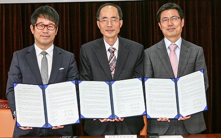 | ▲ 9일 대구 달성교육지원청에서 진행된 '상호 업무 협약식'에서 디지털교과서협회, 퀄컴 관계자 등이 기념사진을 촬영하고 있다. | ||