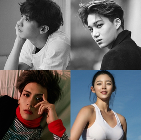 | ▲ 왼쪽부터 시계방향으로 엑소 찬열, 카이, 유승옥, 샤이니 종현 / 사진=SM엔터테인먼트, 프로페셔널엔터테인먼트 | ||