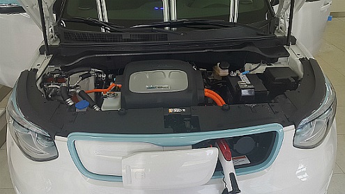 | ▲ 비상용 충전케이블을 이용해 일반 콘센트 충전 중인 쏘울EV. | ||