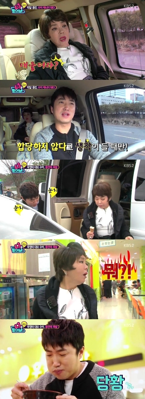 평소 막말을 서슴지 않는 장동민은 직설적인 화법에 '욕쟁이' 캐릭터로 유명한 김수미의 매니저를 맡아 촬영에 임했다.