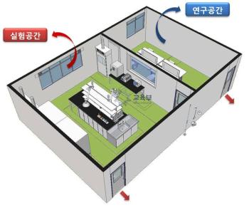 | ▲ '실험실 안전환경 구축 가이드' 공간배치 사례. /자료=교육부 | ||