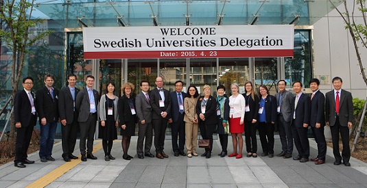 | ▲ 23일 서울 마포구 서강대에서 스웨덴 5개 대학 관계자 등이 기념사진을 촬영하고 있다. | ||