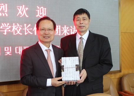 | ▲ 23일 중국 후난성 후난이공대학에서 진행된 협정식에서 송희영 건국대 총장(왼쪽)와 위산딩 후난이공대 총장이 기념사진을 촬영하고 있다. | ||