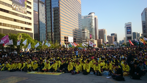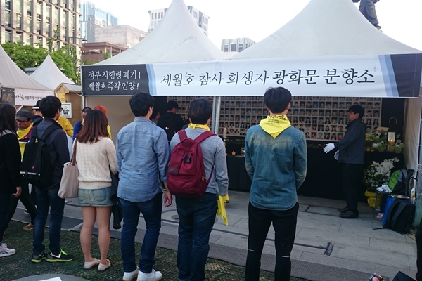 4·16연대를 비롯한 시민들은 오후 5시부터 광화문 광장으로 모여 분향 후 세종대왕 동상 앞에서 세월호특별법 시행령 폐기와 세월호 참사 진실규명을 요구하고 있다.