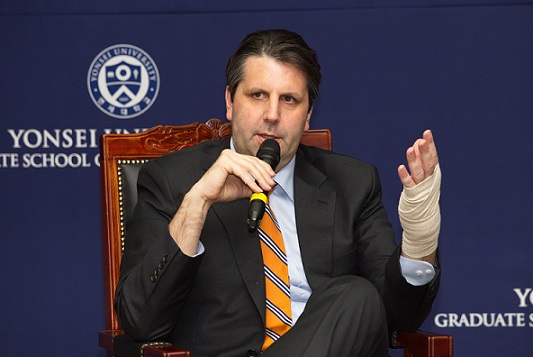 [미디어펜=류용환 기자] 연세대학교 국제학대학원은 서울 서대문구 교내 새천년관 대강당에서 마크 리퍼트 주한 미국 대사 초청 ‘한·미 관계 타운홀 미팅’을 27일 개최했다.