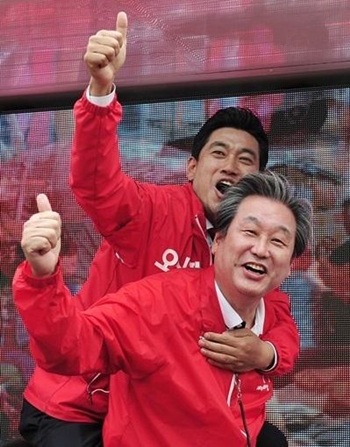 | ▲ 4.29 재보선 관악을에 출마한 오신환 후보(위)와 김무성 새누리당 대표(아래) / 사진=김무성 트위터 | ||