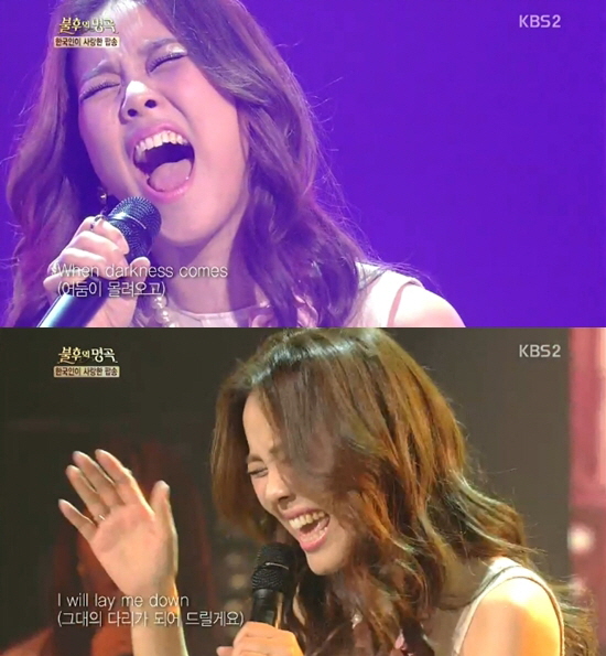 9일 오후 방송된 KBS2 '불후의 명곡-전설을 노래하다'에서 60년대 최고의 듀오로 각광받았던 사이먼 앤 가펑클의 곡 'Bridge Over Troubled Water'을 부른 소향을 두고 전설의 DJ 김광한이 평한 말이다.