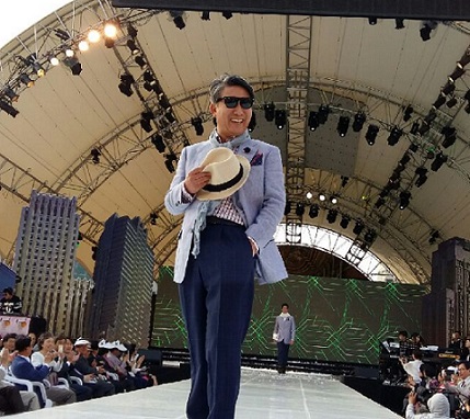 | ▲ 지난 9일 서울 서초구 예술의전당 신세계스퀘어 야외무대에서 진행된 '2015 시니어 패션쇼'에서 이동관 디지털서울문화예술대 총장이 포즈를 취하고 있다. | ||