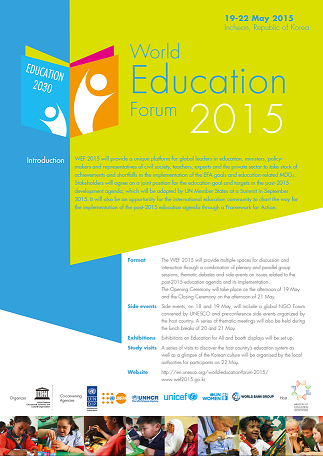 태국 좀티엔(1990년), 세네갈 다카르(2000년) 이후 15년 만에 3번째로 개최되는 이번 포럼은 유네스코가 주최하는 교육분야 최대 국제회의다.