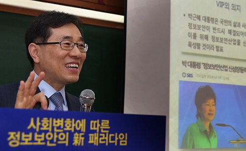 | ▲ 1일 서울 종로구 상명대에서 임종인 청와대 안보특보가 사이버안보에 대한 강연을 진행하고 있다. | ||