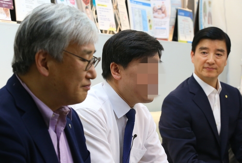 | ▲ '중동호흡기증후군(메르스)' 감염 이후 완치돼 8일 퇴원한 5번째 메르스 환자(가운데)가 서울 강동구 365열린의원에서 이동승 강동구 의사협회 회장(왼쪽), 이해식 강동구청장과 함께 격리 치료 등에 대해 기자회견을 하고 있다. /사진=연합뉴스 | ||