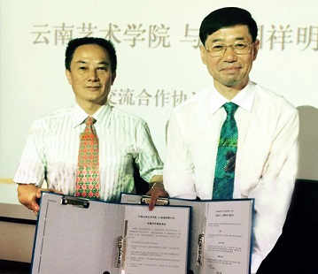| ▲ 9일 중국 운남예술대학에서 진행된 '자매결연 협정식'에서 오위민 운남예대 총장(왼쪽)과 구기헌 상명대 총장이 기념사진을 촬영하고 있다. | ||