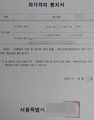 메르스, ‘자가격리 통지서’에는 뭐라고 적혀있길래?
