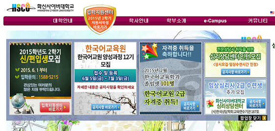 | ▲ 2015학년도 신·편입생을 모집 중인 화신사이버대학교가 입학금 30만원 면제 혜택을 강조하며 학생 유치에 나섰다. | ||