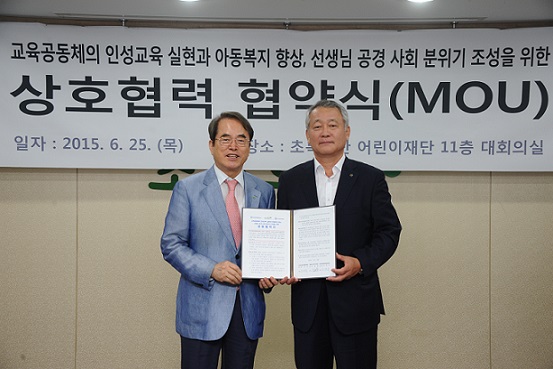 [미디어펜=류용환 기자] 한국교원단체총연합회와 인성교육범국민실천연합, 초록우산어린이재단은 교육공동체 인성교육 실현 등을 위한 협약(MOU)을 25일 체결했다.