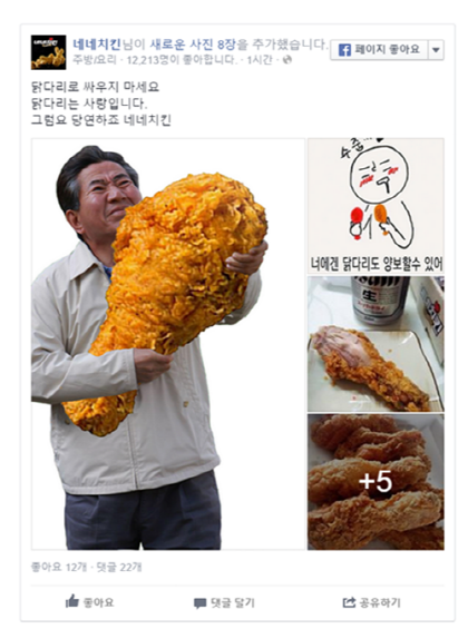 [미디어펜=임창규기자] 본사도 아니고 일개지사의 SNS 담당자가 올린 합성이미지가 네네치킨 프랜차이즈 기업을 파국으로 몰아넣고 있다. 1일 저녁 네네치킨 서부지사 페이스북 담당자가 치킨을 안고 있는 고 노무현 대통령의 합성사진을 게재한 것에 대해, 일부 소비자들과 네티즌들의 악성댓글과 비판이 쇄도하고 있는 가운데 네네치킨은 고위직 임직원 4명을 직위해제하는 비상조치를 취했다.