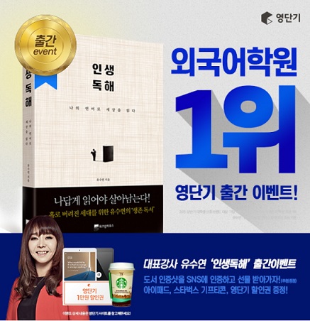 [미디어펜=류용환 기자] 에스티앤컴퍼니 외국어전문 ‘영단기’는 강사 유수연의 ‘인생독해’ 발간 기념 이벤트를 진행한다고 9일 밝혔다.