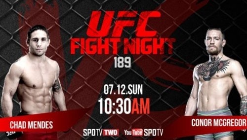 맥그리거는 12일(한국시간) 미국 네바다주 라스베이거스 MGM 그랜드가든 아레나에서 열린 ‘UFC 189’에서 채드 멘데스에게 2라운드 TKO승을 거뒀다.