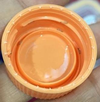 | ▲ '구더기 액산분유' 논란이 일고 있는 가운데 살아있는 구더기가 발견된 A업체 액상분유의 병뚜껑. /사진=온라인 커뮤니티 | ||