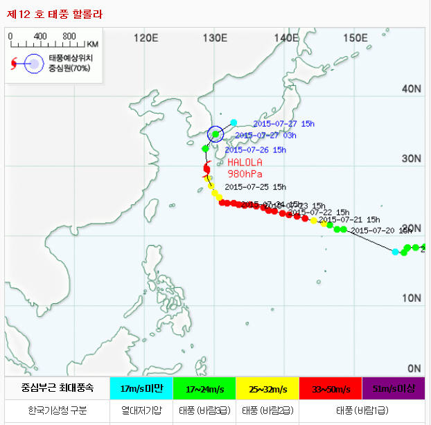 앞서 기상청은 12호 태풍 할룰라가 오늘 오후부터 쓰시마 남쪽을 경유할 것으로 전망, 제주도 먼바다와 남해 서부동쪽 먼바다에 태풍 주의보를 내렸다.